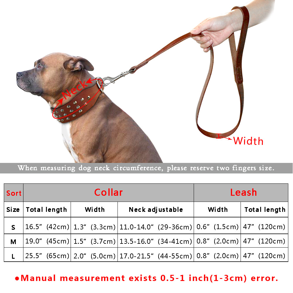 Cool Studded Genuine Leather Pet Dog Collars Leash