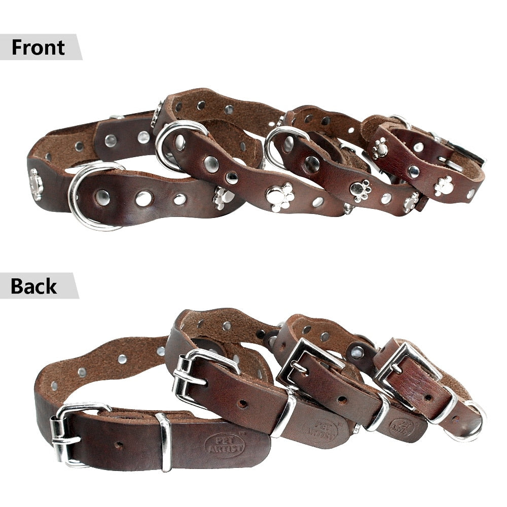 Soft Genuine Leather Pet Dog Collars Adjustable